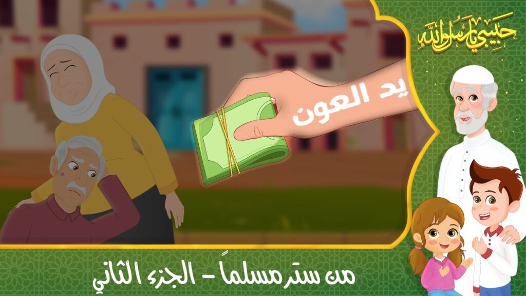 قصة عن حديث من ستر مسلماً، الجزء الثاني، حلقة جديدة من مسلسلكم المفضل حبيبي يا رسول الله من وحي الأحاديث والقرآن نقصها عليكم في إطار قصصي من أجل الفائدة والتحلي بالأخلاق الفاضلة والإسلامية،فب هذه الحلقة يكمل الجد القصة للاطفال حول الحديث الشريف (من نفس عن مؤمن كربة من كرب الدنيا، نفس الله عنه كربة من كرب يوم القيامة، ومن يسر على معسر، يسر الله عليه في الدنيا والآخرة، ومن ستر مؤمنا ستره الله في الدنيا والآخرة، والله في عون العبد ما كان العبد في عون أخيه، ومن سلك طريقا يلتمس فيه علما، سهل الله له به طريقا إلى الجنة، وما اجتمع قوم في بيت من بيوت الله يتلون كتاب الله ويتدارسونه بينهم، إلا نزلت عليهم السكينة، وغشيتهم الرحمة، وحفتهم الملائكة، وذكرهم الله فيمن عنده، ومن بطأ به عمله، لم يسرع به نسبه)، تبدأ حلقتنا مع الشيخ الحكيم عم عبدالله وهو يواسي عبدالله المسكين ويلومه على تصرفه بعد أن تأخروا الفلاحين في سداد الاموال له، وهنا يشعر عبدالله المسكين بالذنب ويذهب إلى الفلاحين ويخبرهم أنه سيصبر عليهم حتى الموسم القادم بالإضافة إلى إعطائهم بعض المال ليفرجوا كربتهم به، وفي طريق عودتهم للبيت يشاهدون رجل شرير يطرد الرجل العجوز هو وزوجته من المنزل بسبب تأخرهم عليه في دفع الإيجار، ترى ماذا سيفعل عبدالله مع ذلك الرجل الشرير وما مصير الرجل العجوز وزوجته؟ كل هذا وأكثر ستعرفونه عند متابعة الجزء الثاني من هذه الحلقة المميزة المليئة بالتشويق والدروس