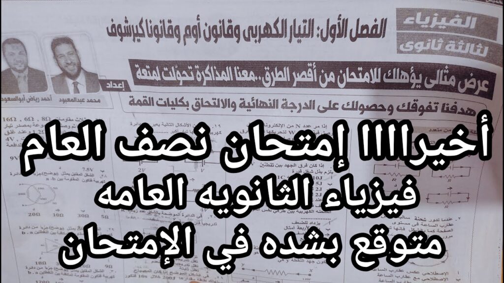أخيرا امتحان الفيزياء للثانويه العامه التيار الكهربي وأوم وكيرشوف المتوقع بشده في الامتحان الجمهوريه