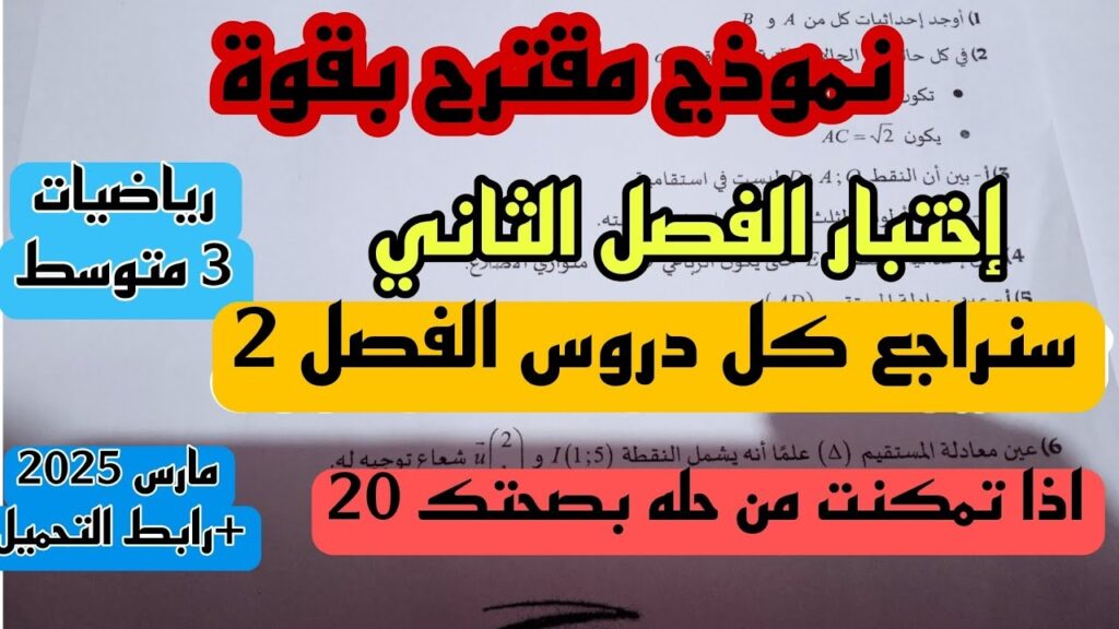 اختبار الثلاثي الثاني في مادة الرياضيات للسنة الثالثة متوسط مارس 2025 + رابط التحميل