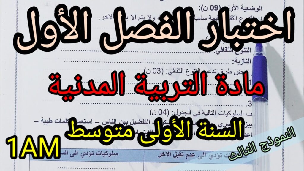 اختبار الفصل الأول في مادة التربية المدنية للسنة الأولى متوسط(النموذج الثالث) 2024/2025