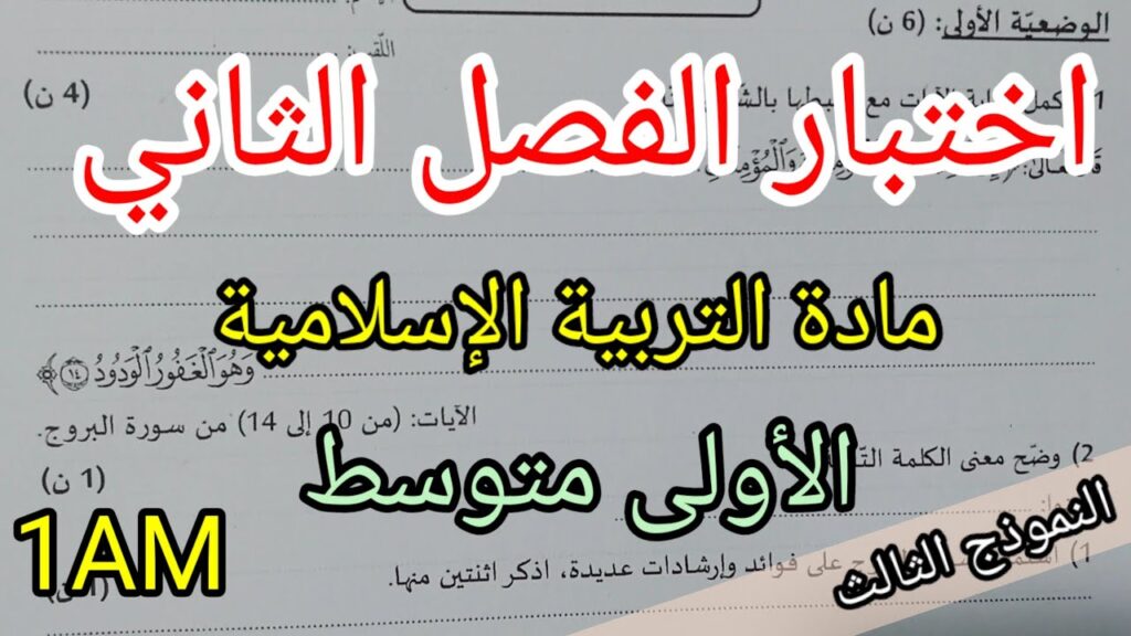 اختبار الفصل الثاني في مادة التربية الإسلامية للسنة الأولى متوسط(النموذج الثالث)