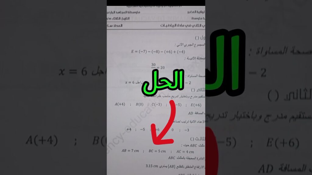 اختبار الفصل الثاني للسنة الثانية متوسط في الرياضيات #الرياضيات_اللانهائية #education #maths