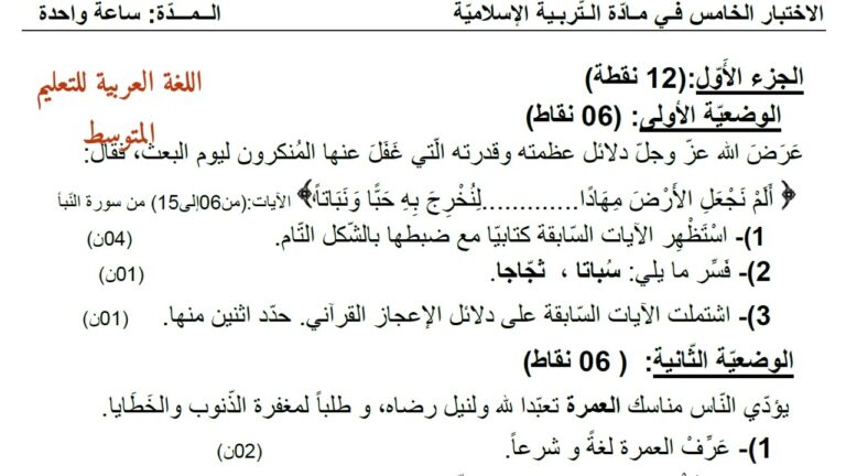 pow نموذج مقترح لشهادة التعليم المتوسط. التربية الإسلامية. شهادة التعليم المتوسط 2023.النموذج الخامس. Views 21