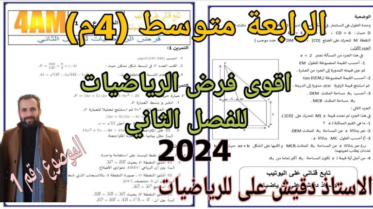 1kh2k فرض الفصل الأول في مادتي التاريخ و الجغرافيا للسنة الأولى متوسط (النموذج الثاني) سنتين ago Views 73 0