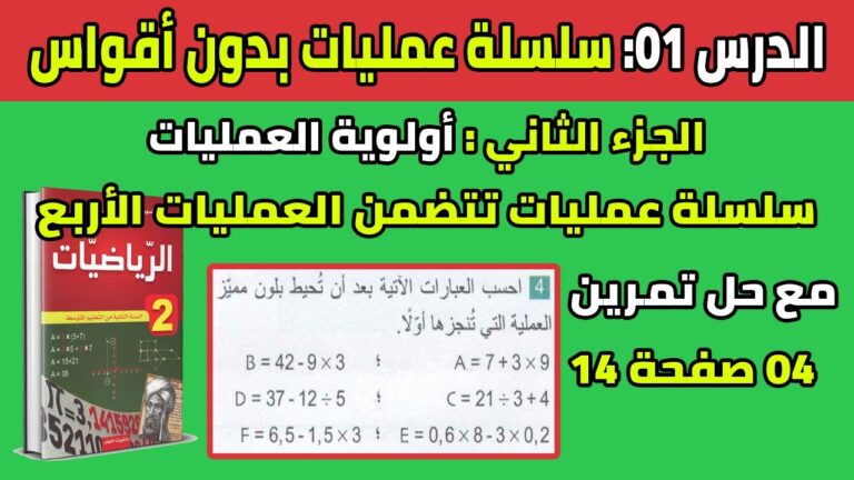 1kh2k الدرس الأول سلسلة عمليات بدون أقواس رياضيات ثانية متوسط مع حل تمرين 04 صفحة 14 3 سنوات ago Views 43 0