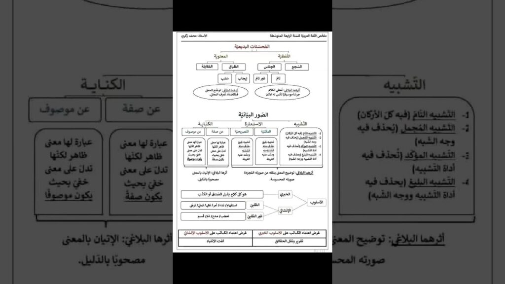المحسنات البديعية/الصور البيانية/الأساليب الإنشائية والخبرية السنة الرابعة متوسط