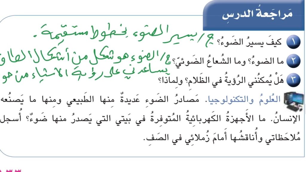 #حل #مراجعة الدرس الضوء#صفحة/ 133 علوم – ثالث الابتدائي.