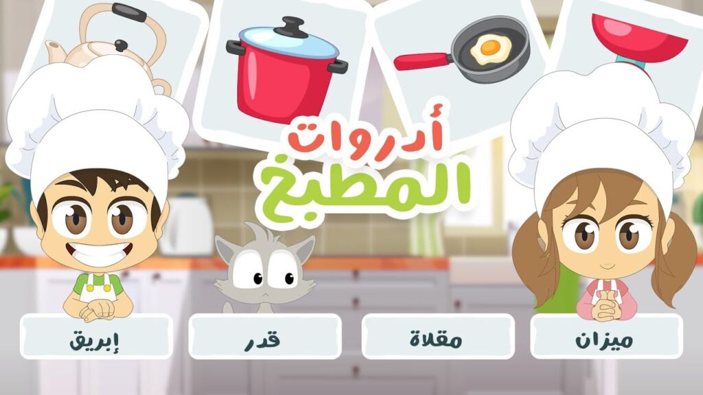 هيا نلعب معا لعبة صل الكلمة بالصورة مع هذا الكرتون، الذي سيعلم الأطفال اسماء أدوات المطبخ بطريقة ممتعة.