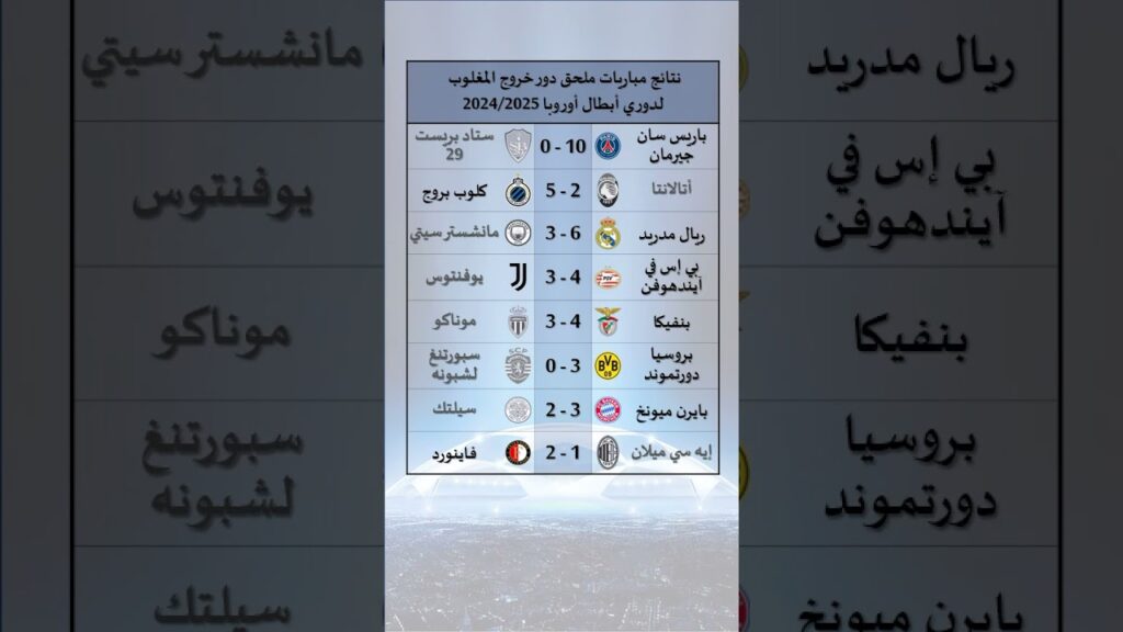 نتائج مباريات ملحق دور خروج المغلوب لدوري الأبطال موسم 2024/2025