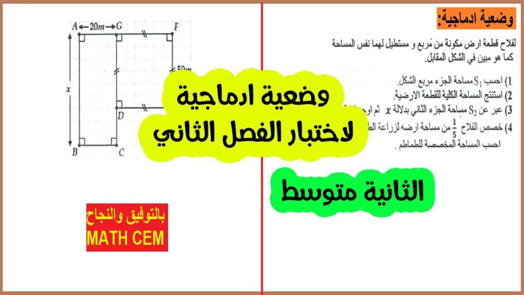 وضعية ادماجية لاختبار الفصل الثاني رياضيات ثانية متوسط